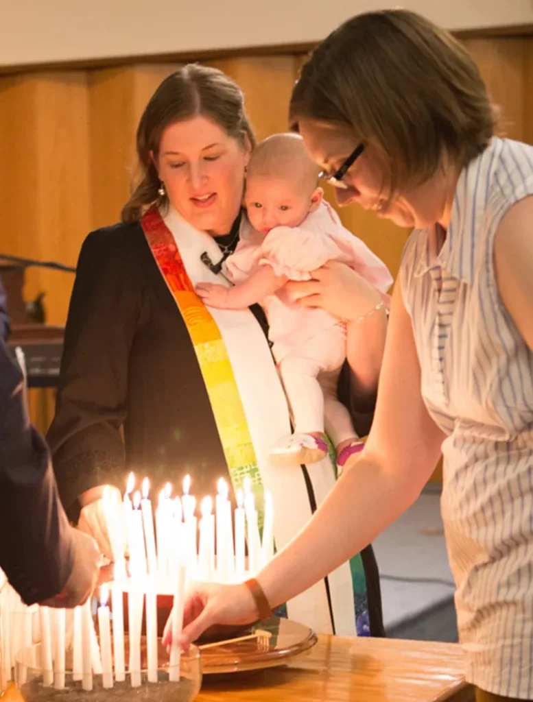 When new babies are born, we welcome them with a special Child Dedication during a regular Sunday morning service. Child Dedications honor the child, their parents, God-parents, and any other extended family involved. We celebrate the child, recognize their given name, and welcome them into community life, promising to accompany them and support them throughout their childhood.